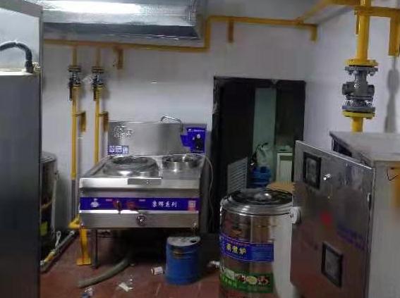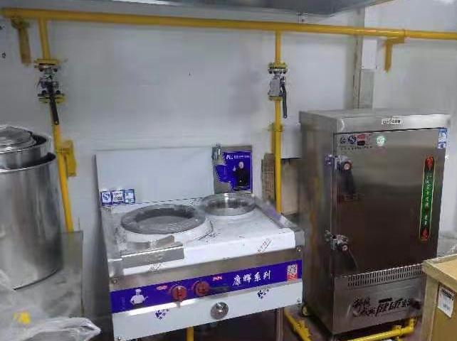 公服1座,公服內(nèi)設(shè)1臺煮面爐(2 Nm3/h.臺)、1臺八眼煲仔爐(4 Nm3/h.臺)、1臺烤箱(3 Nm3/h.臺)、1臺炸鍋(3 Nm3/h.臺),共4臺灶具,高峰俠士用氣量12 Nm3/h,選用一臺金額型G10 CPU 卡皮膜表進行將,配套表箱。